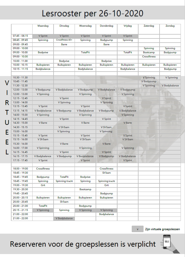 Het nieuwe groepslesrooster staat online! Bekijk het online of via de app!