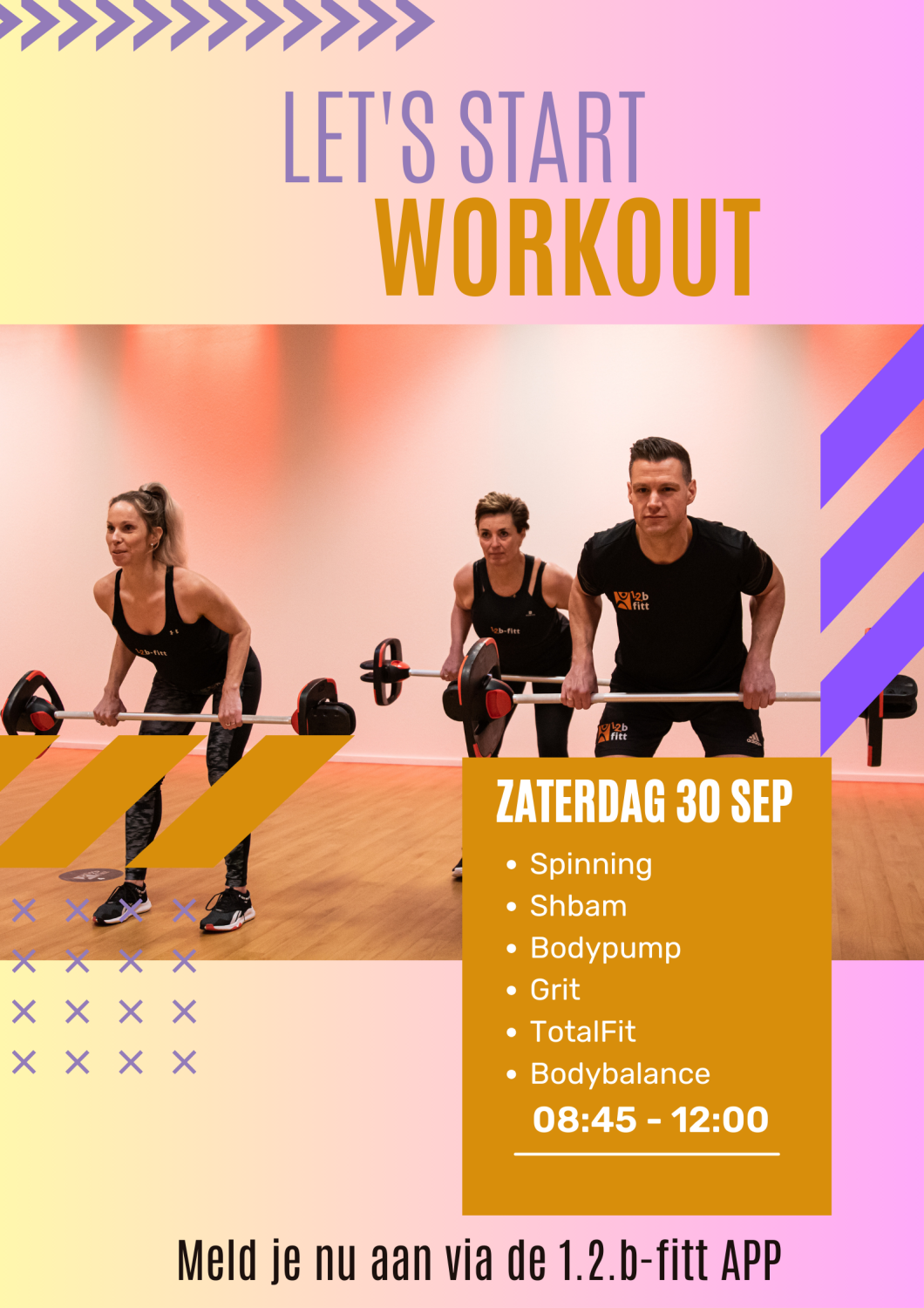 Daar gaan we weer🎉 Zaterdag 30 sep hebben we weer een megaworkout bij 1.2.b-fitt waarbij we verschillende lessen geven in twee blokken.